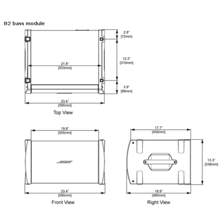 BOSE B2 Bass Module – это мощный активный низкочастотный модуль (сабвуфер), для пользователей, которые нуждаются в более мощных басах для большей аудитории. Низкочастотный модуль BOSE B2 Bass Module имеет прочный компактный корпус, в котором помещены два 10-ти дюймовых низкочастотных динамика.
