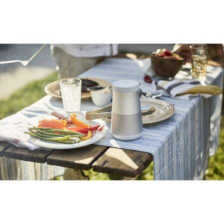 Познакомьтесь с SoundLink Revolve II – портативной Bluetooth колонкой, рационально сочетающей исключительную компактность и громкий, насыщенный низкими частотами звук. Установите колонку в центре комнаты – и все присутствующие, с какой бы стороны они ни находились, будут впечатлены сбалансированным, равномерно распределенным по помещению звуком. Размещеннная у стены колонка SoundLink Revolve II также будет заполнять комнату звучанием за счет отражения звуковых волн. Собираетесь на природу? Возьмите с собой SoundLink Revolve II – эта колонка создана для пикников.