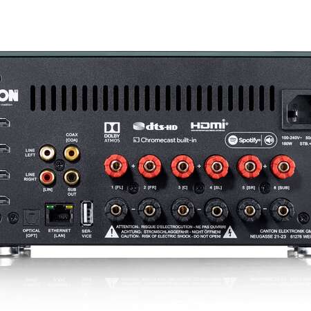 Высококачественный AV-усилитель служит центром подключения как пассивных, так и интеллектуальных динамиков. Основа для впечатляющего звучания здесь создается за счет передачи без потерь с высоким разрешением до 24 бит / 96 кГц. Это позволяет комбинировать 6 пассивных динамиков и до 8 беспроводных интеллектуальных динамиков. Многомерный виртуализатор обеспечивает потрясающий трехмерный объемный звук - даже с 2 подключенными динамиками. Мощный DSP обеспечивает высококачественный стереозвук с многоканальными достоинствами. Здесь варианты универсальны и уникальны: будь то потоковое стерео или подключение как домашний кинотеатр. Таким образом, у вас есть возможность подключить передние динамики и подключить задние динамики по беспроводной сети.